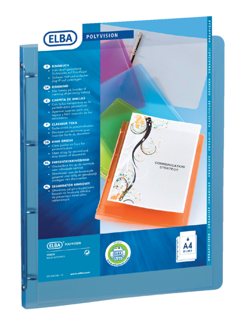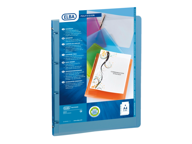 - A4 kunststof ringband met 4-rings O-mechaniek in trendy kleuren.