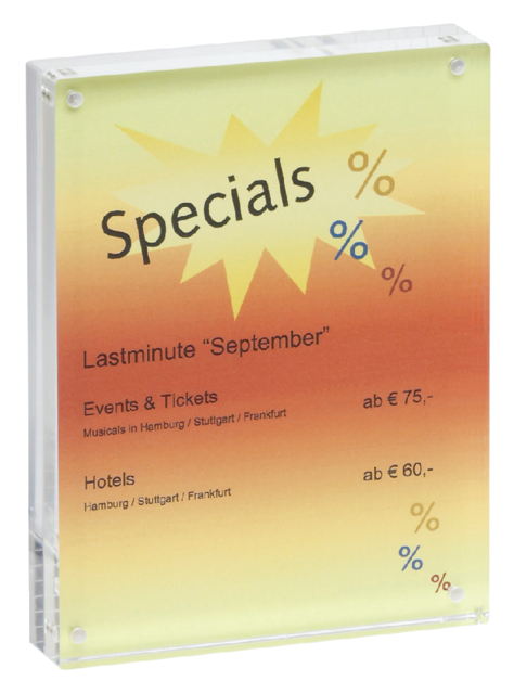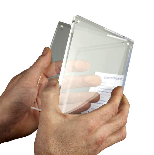 • De wissellijsten voor spijskaarten, foto’s, tafelaanduidingen zijn zowel hoog- als dwars te gebruiken, met magneetsluiting.