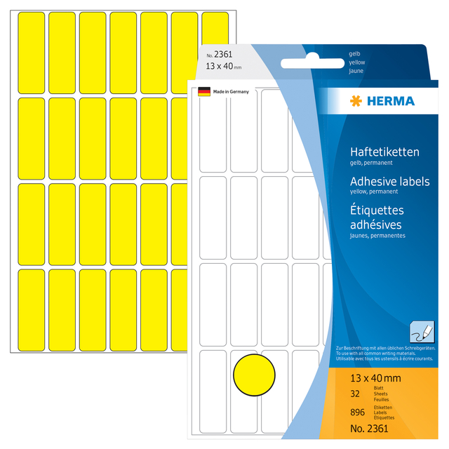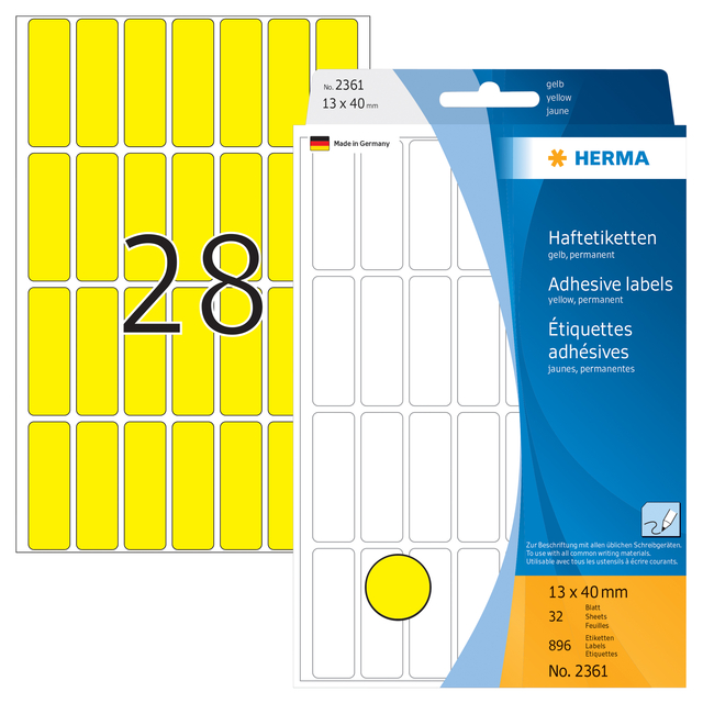 2361 – HERMA Gekleurde Etiketten Schrijfpapier 13x40mm 896st Geel 1 Pak