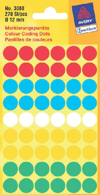 3088 - Avery Codering Etiket Zweckform 3088 12mm 270st Diverse Kleuren