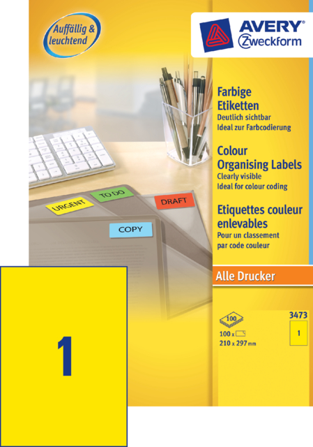 3473 – Avery Gekleurde Etiketten Zweckform 210x297mm 100st Geel