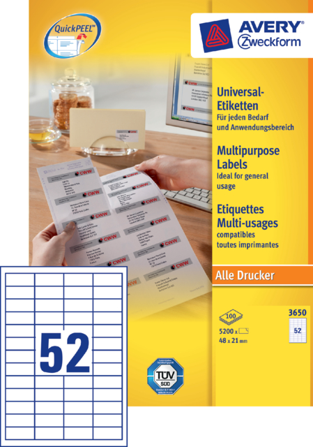 - Voorzien van QuickPEEL toepassing om de etiketten nog eenvoudiger van het vel te halen (QP).