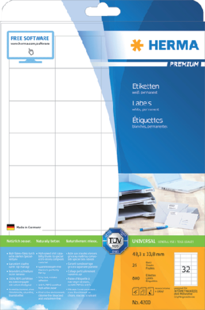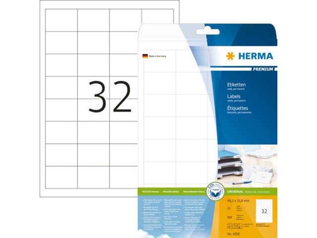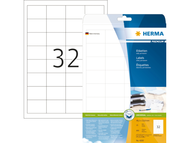 - de maatvoering van herma etiketten zijn standaard opgenomen in gangbare softwarepakketten.