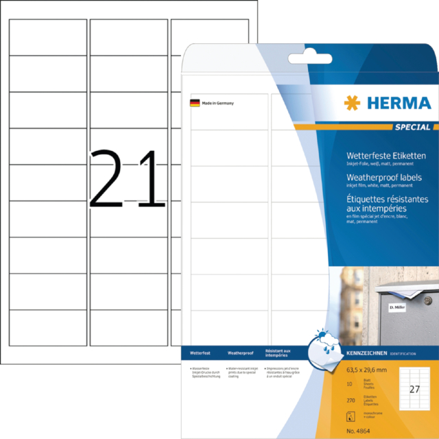 - Weervaste inkjet folie-etiketten op A4-vellen, wit/mat, zelfklevend