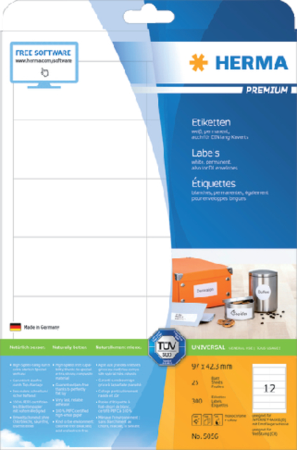 - De maatvoering van Herma etiketten zijn standaard opgenomen in gangbare softwarepakketten.