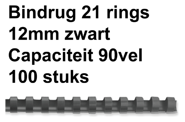 53465 - FELLOWES Bindrug Kunststof A4 21-Rings 12mm Zwart 100st