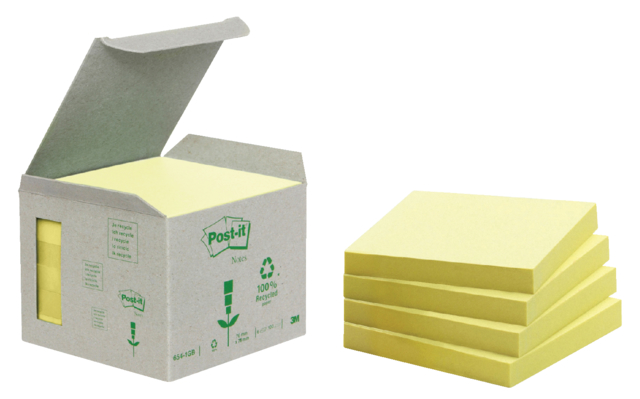 654-1B - 3M Post-It Memoblok Greenline 76x76mm Geel 6st