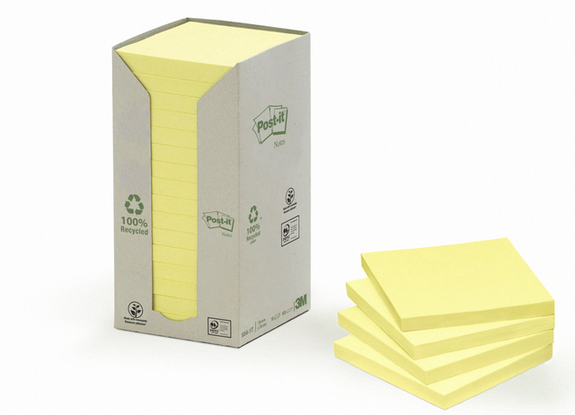 654YRT - 3M Post-It Memoblok Greenline 76x76mm Geel 16st