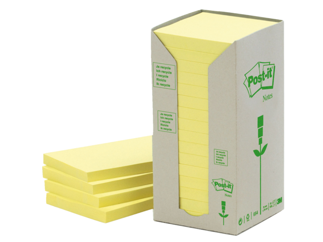 654YRT – 3M Post-It Memoblok Greenline 76x76mm Geel 16st