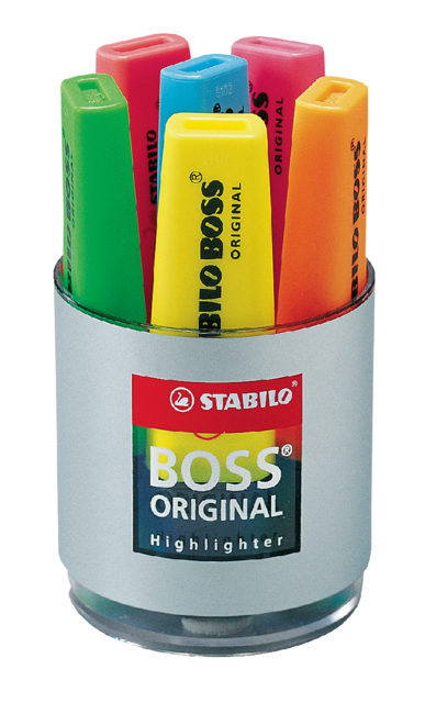 Europa’s nummer 1 highlighter! De helderheid van de negen kleuren en de levensduur van de Stabilo Boss Original zijn al 40 jaar legendarisch.