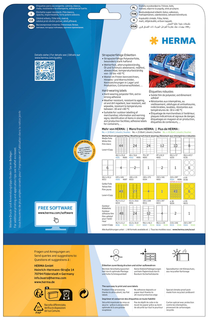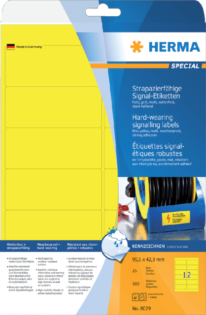 - ideaal voor etiketten op zwaar belaste plaatsen en buiten: eigendomsetiketten, etalagestickers, attentie- en waarschuwingsplaatjes, labelen in het magazijn en in de productie.