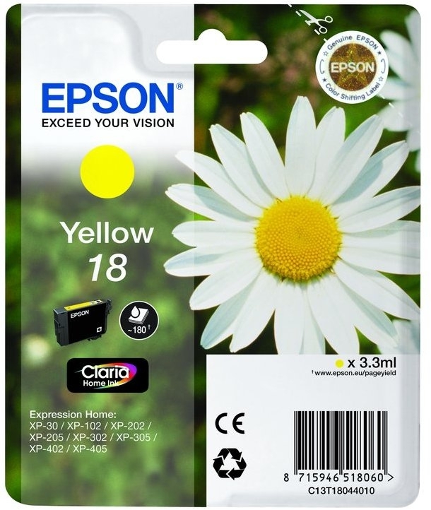 Epson 18 inktcartridge geel standard capacity 3.3ml 180 paginas 1-pack rf-am blister
