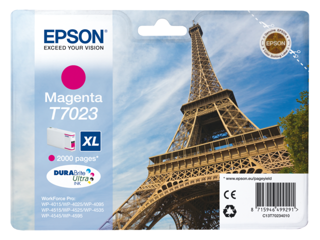 Paginaopbrengst | 2000 pagina’s | Compatibele producten | Epson WorkForce Pro WP-4015 DN, Epson WorkForce Pro WP-4025 DW, Epson WorkForce Pro WP-4515 DN, Epson WorkForce Pro WP-4525 DNF, Epson WorkForce Pro WP-4545 DTWF | |