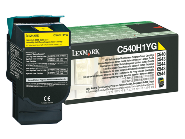 De Lexmark supplies zijn speciaal ontwikkeld om de beste afdrukkwaliteit te leveren, van de eerste tot de laatste pagina. Gemiddeld rendement bij samengesteld kleur (CMY, bij onafgebroken afdrukken) is 2000 standaard pagina’s, bepaald volgens ISO/IEC 19798-norm. Voor gebruik in de Lexmark C540, C543, C544, X543, X544 printers. Lexmark Retourprogramma Cartridges Lexmark Retourprogramma Cartridges zijn cartridges die door Lexmark tegen een gereduceerde prijs worden aangeboden onder de voorwaarden dat de klant de cartridge slechts éénmalig gebruikt en erin toestemt om de lege cartridge terug te sturen naar Lexmark voor hergebruik of recycling. Gewone cartridges, u aangeboden aan de normale prijs en zonder deze voorwaarden, zijn ook beschikbaar. Alle Lexmark cartridges kunnen via het Lexmark Cartridge Inzamelprogramma zonder kosten worden geretourneerd. Lexmark Cartridge Inzamelprogramma Het Lexmark Cartridge Inzamelprogramma biedt verschillende retourmethoden en voorziet in unieke samenwerkingsverbanden voor inzameling overal ter wereld. Inzamelprogramma’s zijn altijd gratis en zijn zodanig opgezet dat u er gemakkelijk aan kunt deelnemen. Landspecifieke instructies en het retouretiket zijn online beschikbaar op de website. |