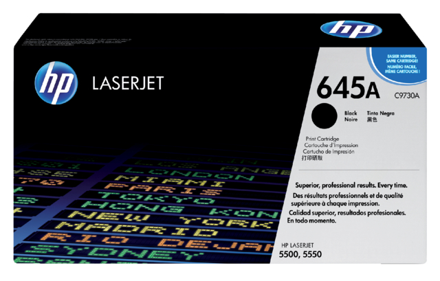 Altijd de beste resultaten met uw HP printsysteem. HP’s Smart Printing technologie en de kunstmatig geproduceerde toner in HP 645A LaserJet tonercartridges zorgen samen met de printer voor accurate, consistente kleuren en betrouwbare, kosteneffectieve prestaties. | ||||