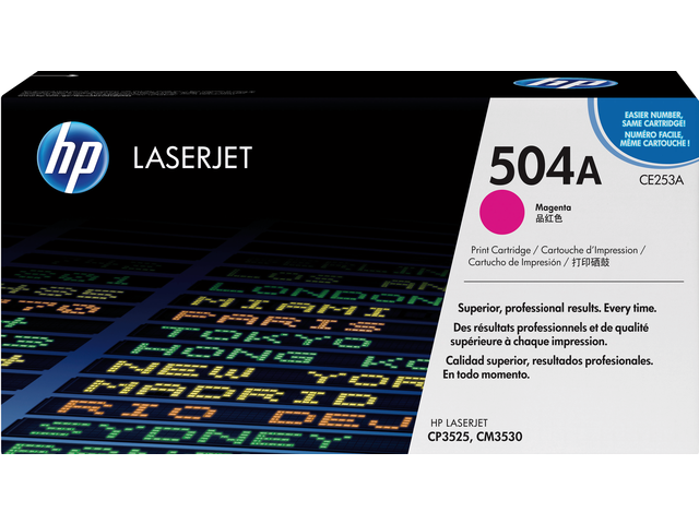 HP Color LaserJet CE253A magenta printcartridges met verbeterde HP ColorSphere toner produceren snel professionele resultaten. Betrouwbare, consistente prestaties voor alles, van dagelijkse documenten tot marketingmateriaal, en tijdbesparende beheerfuncties. | ||||