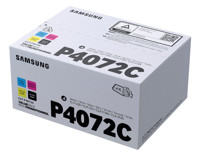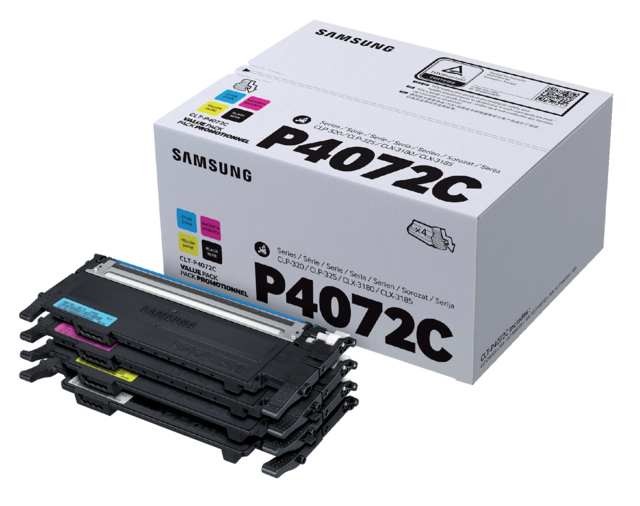 C / M / Y / K rainbow toner kit Bekijk hier direct de Samsung C / M / Y / K rainbow toner kit CLT-P4072C. Een indrukwekkende kleurkwaliteit op al uw afdrukken. |