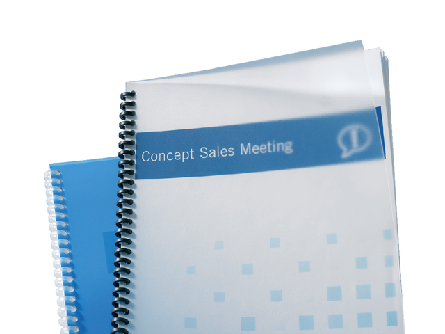 PolyClearView bindomslagen zijn gemaakt van sterk, recyclebaar polypropyleen en vormen een duurzaam, semitransparant voorblad om de A4-titelpagina’s van uw documenten te beschermen en verfraaien. Verkrijgbaar in diverse diktes en structuren. De bindomslagen zijn niet alleen professioneel en stijlvol, maar ook vlek- en krasbestendig. | ||||