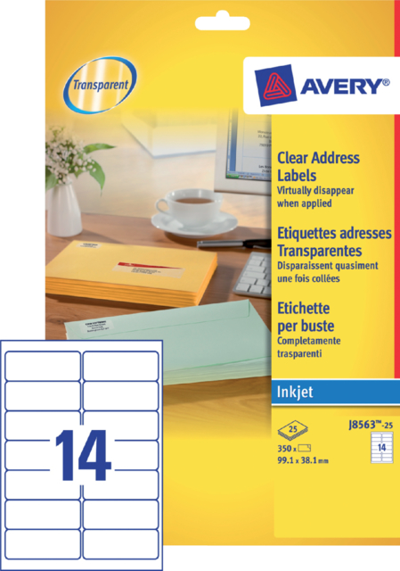 J8563-25 – Avery Adres Etiket QuickPEEL J8563 99.1×38.1mm 350st Transparant 1 Pak
