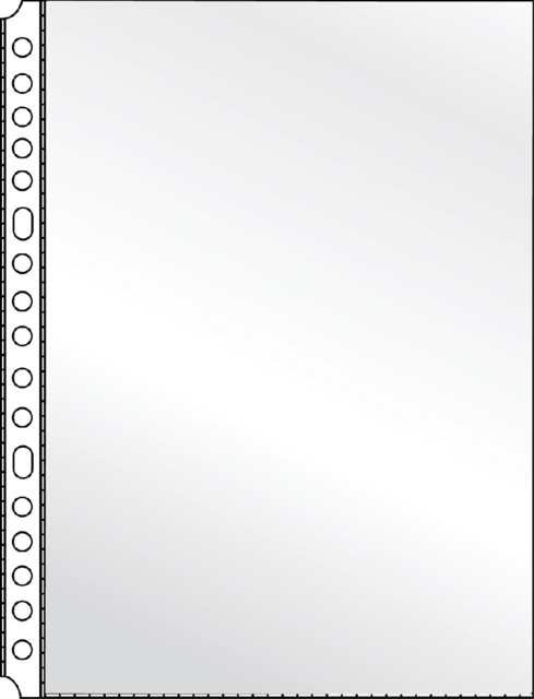 • Bovenzijde open en de ponsgaten zijn met een witte strook versterkt.
