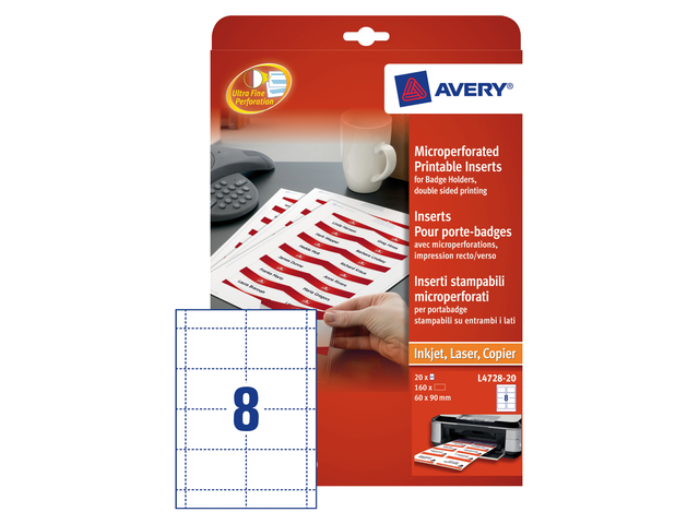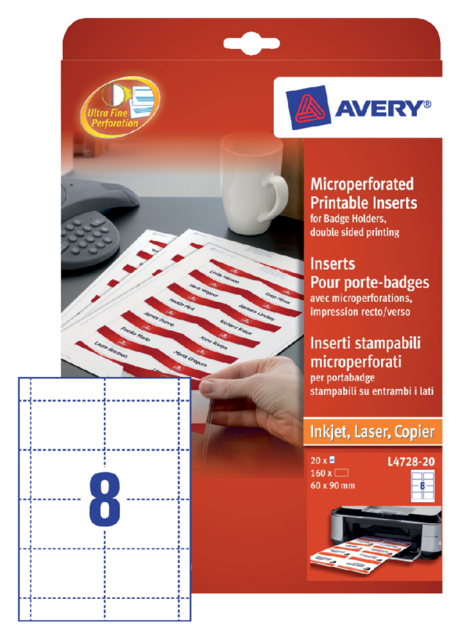 - Voorzien van microperforatie, zodat de kaartjes gemakkelijk en netjes van het vel gehaald kunnen worden.