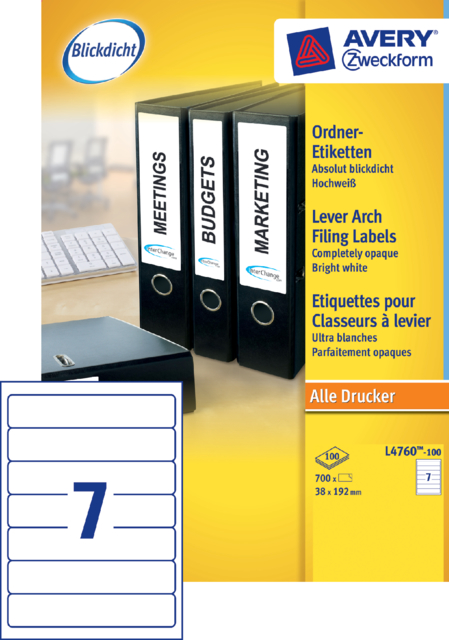 • Avery ordneretiketten schijnen niet door (BlockOUT).