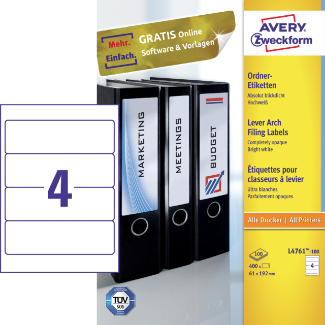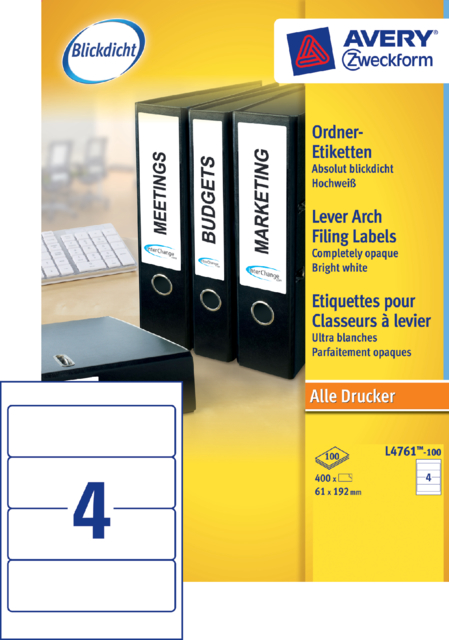 L4761-100 – Avery Rugetiketten 192x61mm 400st Wit