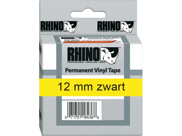 S0718450 - DYMO Lettertape RHINO 12mm 5,5m Geel Zwart Vinyl 18432