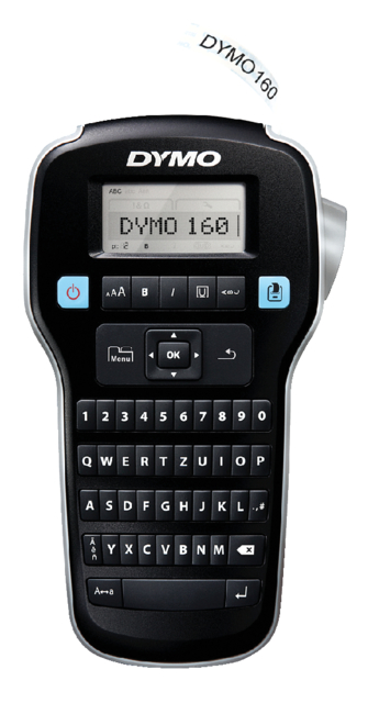 Gebruik de draagbare en betaalbare DYMO® LabelManager™ 160-labelmaker en druk uw stempel op de wereld! Type gewoon uw tekst, maak hem op met door één toets bediende sneltoetsen en druk af.